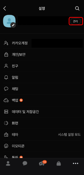 내 이름 옆의 [관리] 버튼을 선택해 줍니다.