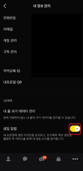 내 프로필에 카카오톡 생일 안뜸 처리를 할 수 있는