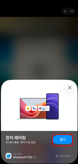 5. 윈도우 화면의 QR 코드를 비추고, 화면에 [장치 페어링] 알림이 나오면 선택해 줍니다.