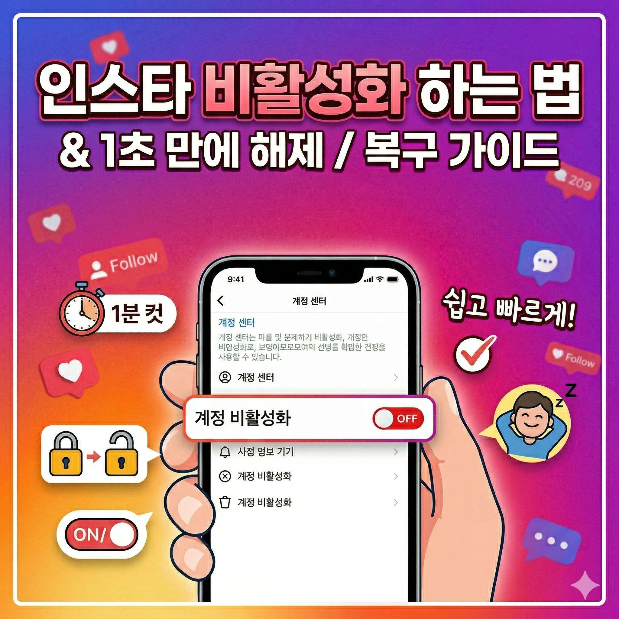 인스타 비활성화 하는법과,