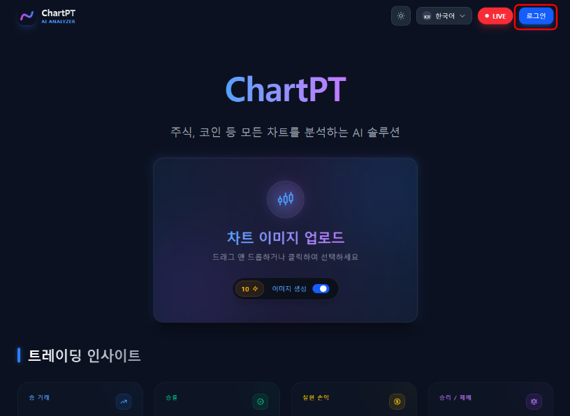 4. 준비된 캡처 이미지를 ChartPT 분석창에