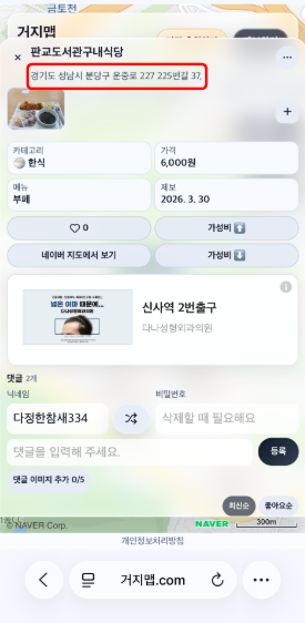 4. 상세 주소와 메뉴판, 그리고 실제 이용자들의
