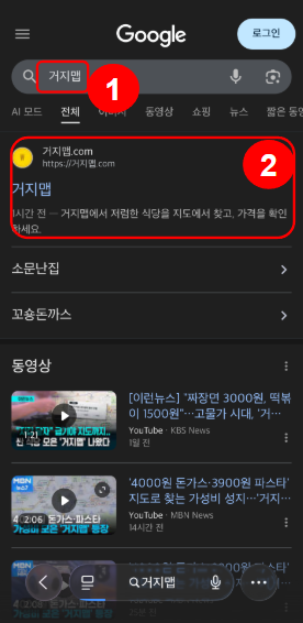 1. 먼저 검색창에 [거지맵]을 검색해