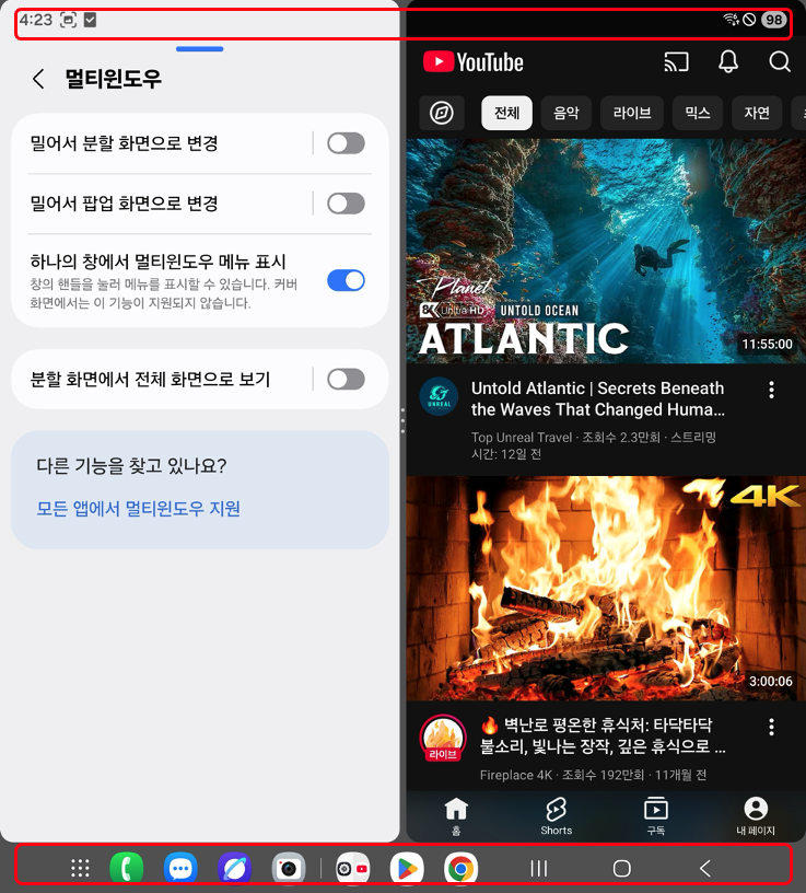 오늘 소개한 밀어서 분할, 팝업 화면, 멀티 윈도우 메뉴, 전체 화면 전환 기능은 처음엔 복잡해 보일 수 있지만 몇 번만 써보면 손에 금방 익는 기능이에요.
