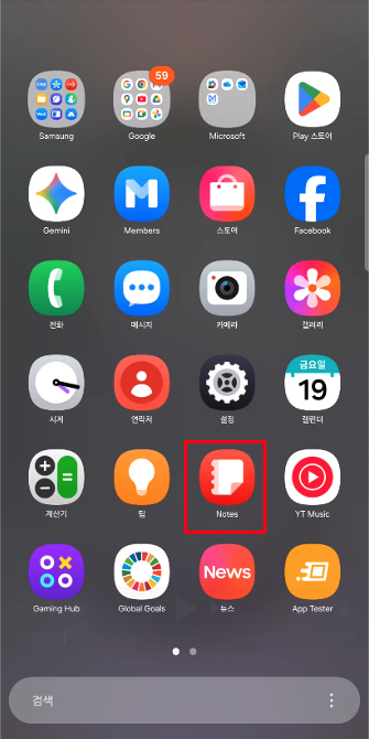 1. 갤럭시 메모 앱 실행